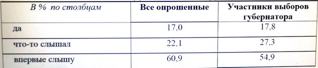 Следует отметить, что большинство избирателей знают о предстоящих осенью выборах депутатов высшего законодательного органы страны. В ходе исследования были выявлены те, кто в прошлом году участвовал в выборах губернатора. Из них лишь 13,8% не знают о Выборах в Госдуму. Это значит, что активные избиратели региона коммуникативно готовы к предстоящей избирательной кампании.